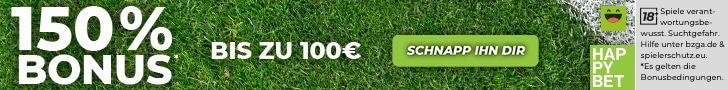 Happybet bietet einen sehr attraktiven Willkommensbonus für deine erste Einzahlung. Dabei handelt es sich um einen 50% bis maximal 100€ Bonus. Das bedeutet wenn du 200€ einzahlst, kannst du mit 300€ spielen.